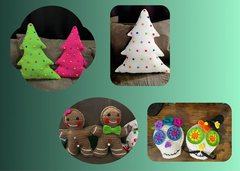 For me , crochet is more than a craft- it's a way to bring warmth, color, and charm into everyday life. From cozy blankets and whimsical plushies to elegant scarves and home decor, my past creations reflect a love of texture, color, and thoughtful design.